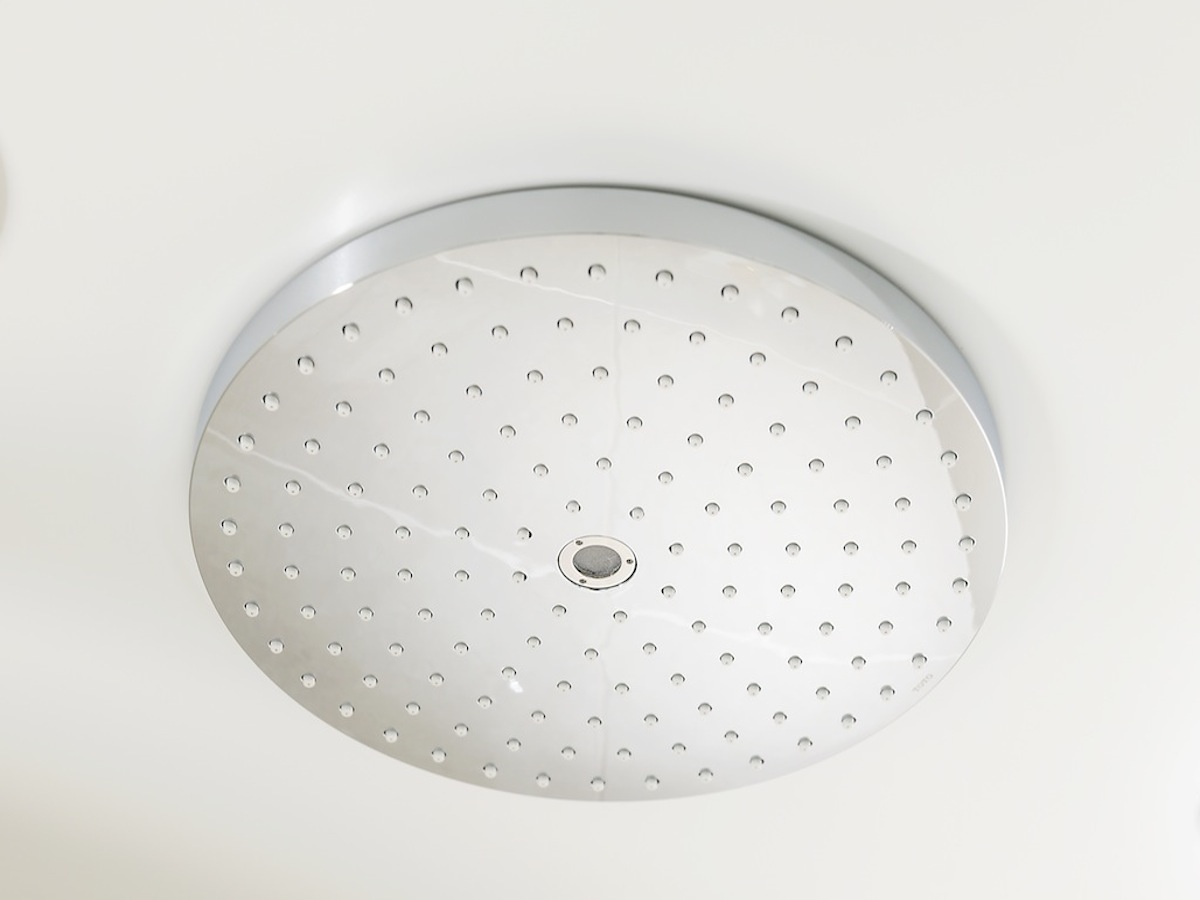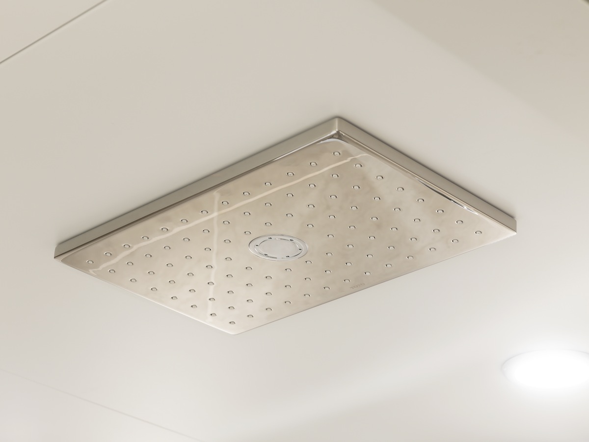 全バスルームに設置されているレインシャワーでは全身を優しい雨に包まれるような心地よい感覚を味わえますよ。スツールに腰掛けながらレインシャワーを浴びたらとっておきの癒やし時間に。