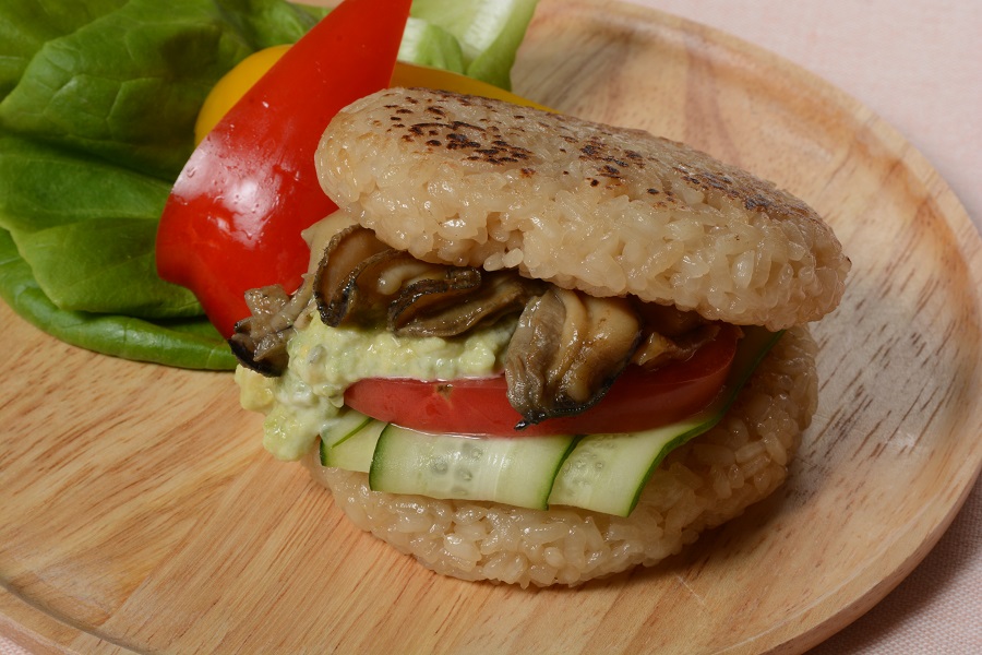 「仙鳳趾産牡蠣とアボカドの甘辛ライスバーガー」750円には、仙鳳趾(せんぽうし)の海流が育んだぷりっと身が引き締まった牡蠣を挟みました。ソースには森のバターであるアボカドを使用。海のミルクである牡蠣のうまみと相性もばっちりで、濃厚な味わいに仕上がっています。焼きおにぎりのような香ばしいライスバンズは食べ応えもたっぷり。