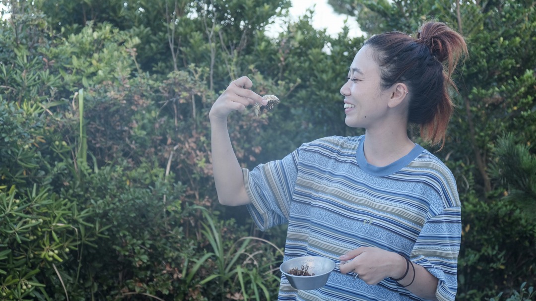 いざ、オオグソクムシを実食!高温の油で素揚げしていただきました。カラッと揚がった深海生物…意外や意外、おいしいです!大きいものは半分にカットして身をほじって食べてみます。味は身のしまったエビのような、カニ味噌を一緒に食べているかのような濃厚な味。