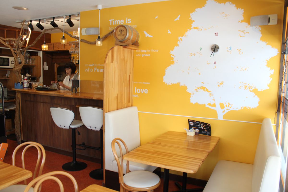 ピザやクレープのセットなど、イートインメニューが豊富なところも人気のヒミツ。黄色を基調にした明るい店内は、思い思いの過ごし方ができる心地よい空間です。
