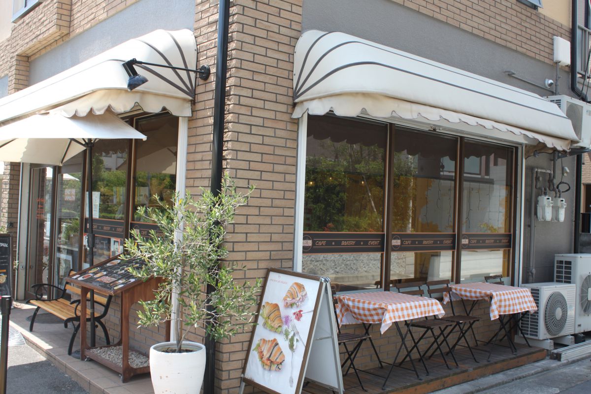 パリの街角にあるカフェをイメージした外観を目印に。ワンちゃん連れは、外のテラス席でゆっくりと。生ビールやグラスワインも、パンやピザのお供にどうぞ。