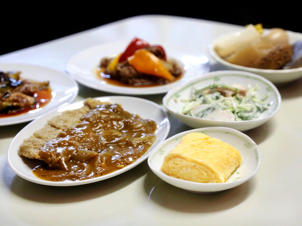 名物のカミカツカレー(300円)や玉子焼(プレーン 100円)をはじめ、プルコギ(280円)、スモークチキンサラダ(260円)、麻婆茄子(300円)、おでん(70円~)など、メニューの大半がワンコイン以下!