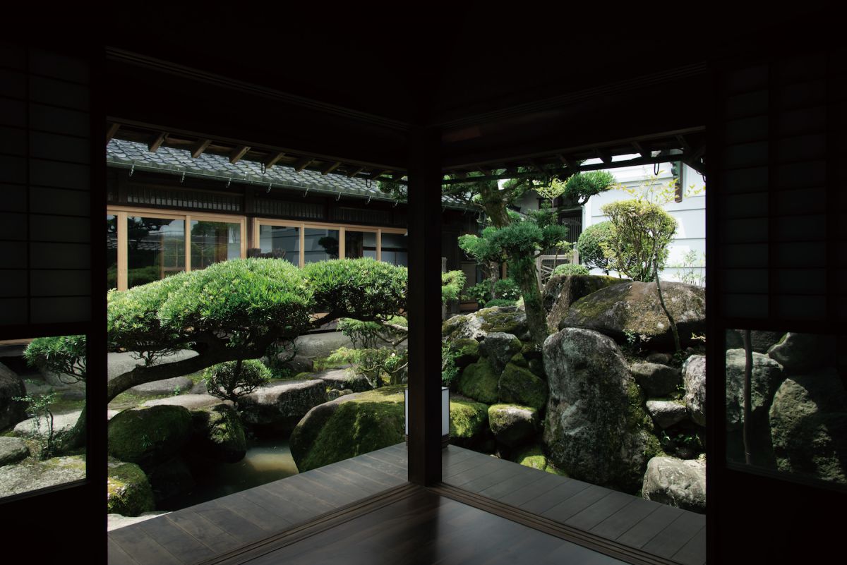 さきがけて、マルト天然醸造醤油を、宿泊者向けの料理に使用。また、食事は当時最上のお客様をお迎えしていた特別な奥の間で、美しい庭の景色を眺めながら。澄んだ空気と静謐な空間もごちそうです。