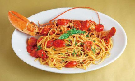 ロブスターを豪快に味わえる人気のパスタメニュー「リングイネ・アスティチェ」は€20。