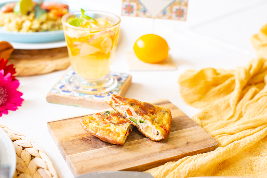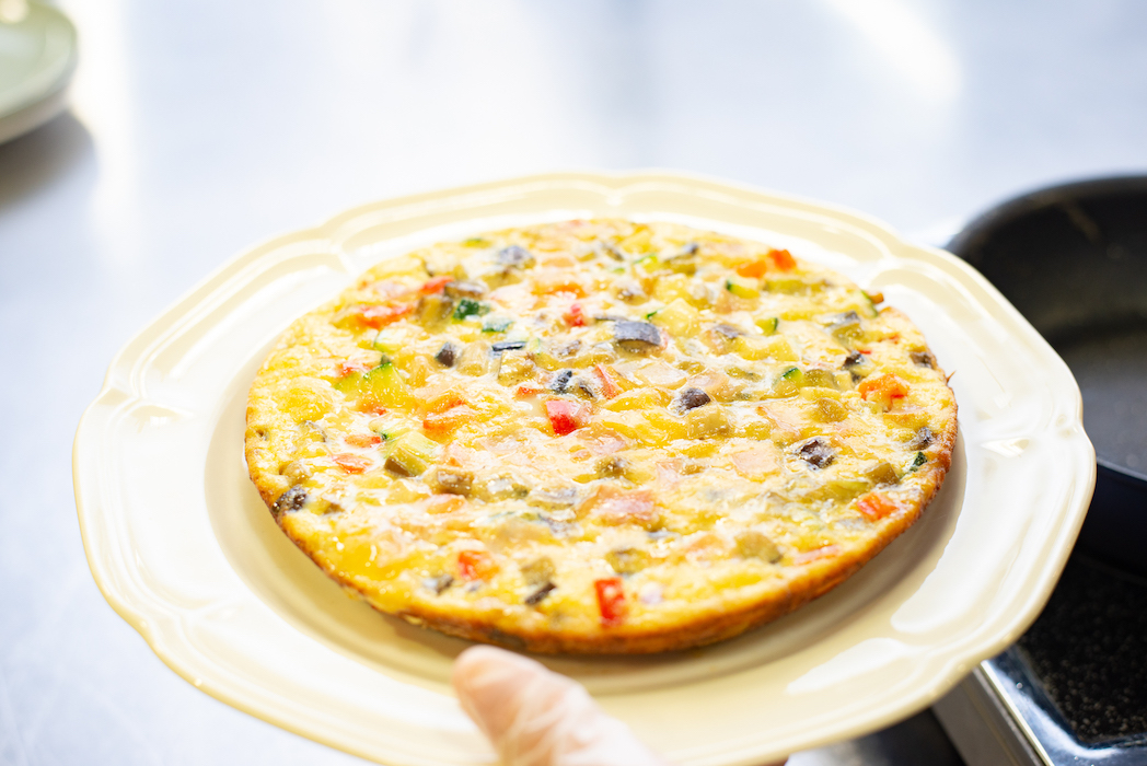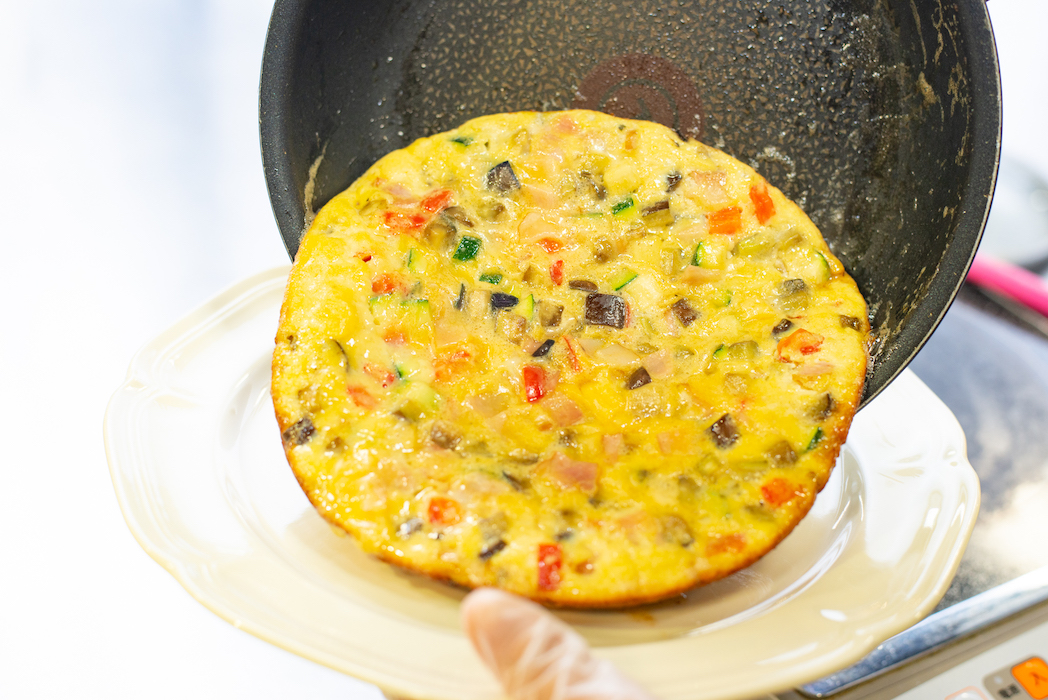 好きな具材を入れ、フライパンの上で“包まずに作れる”スパニッシュオムレツ。ズッキーニ、なすなど夏野菜がたっぷりで、夏バテ気味の身体も元気に!