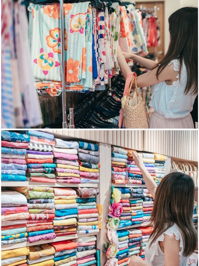 店内には、カラフルな着物や浴衣、小物がたくさん並んでいます。全店1000着以上の着物を常備しているのとのこと!種類がたくさんありすぎて迷ってしまいますが、着物や浴衣選びの相談に乗ってくれるので、一安心です。お気に入りの素敵な着物や浴衣がきっとみつかるはず。