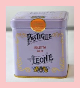 スミレ風味のキャンディは€6.70。食べ終わった後も使えるレトロな缶入りです。