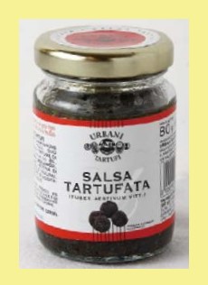 天然トリュフをたっぷり使った製品を扱う、ウルバーニ社製の黒トリュフソース(€4.20)。パニーノやパスタソースなどに◎。