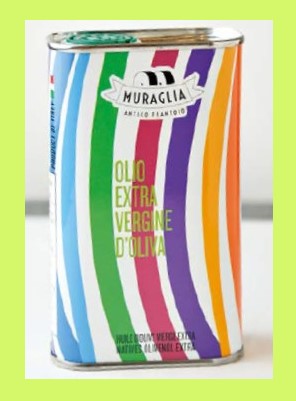 こちらのカラフルな缶も、なんとオリーブオイル!石臼で搾油する伝統的な製法のメーカー、ムラリアのものです。€7.50。