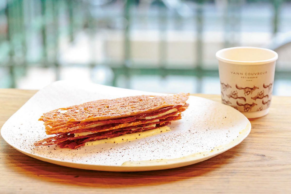 ラファイエット・グルメにも出店する今注目のパティシエの1号店。2016年のオープン以来、世界中のスイーツ好きが訪れています。1日50個限定の「そば粉のミルフィーユ マダガスカル産バニラ風味(€10)」は、連日売り切れ必至なほど人気のスイーツだそう!