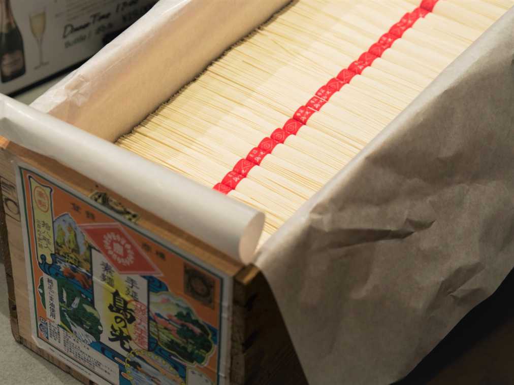 おいしい最大の理由は、小豆島の手延べそうめん「島の光」を使っているから。実はこのそうめん、希少性の高い麺といわれていて、練る際に小麦粉や塩に加え、日本で唯一ごま油を用いているのだそうです。