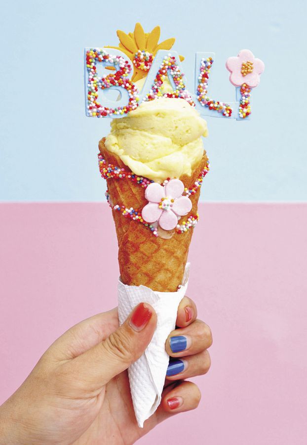 アイスクリームスタンドで食べられる、豆乳とココナッツミルクを使用したヴィーガンアイスもおすすめです!かわいい壁の前ですてきな写真を撮ってみましょう。