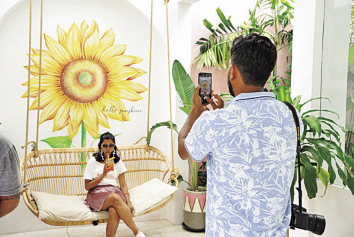 テラスにあるブランコは撮影必須!大きなひまわりのペイントの前で記念撮影をしましょう。南国らしさもあってとってもフォトジェニックです。