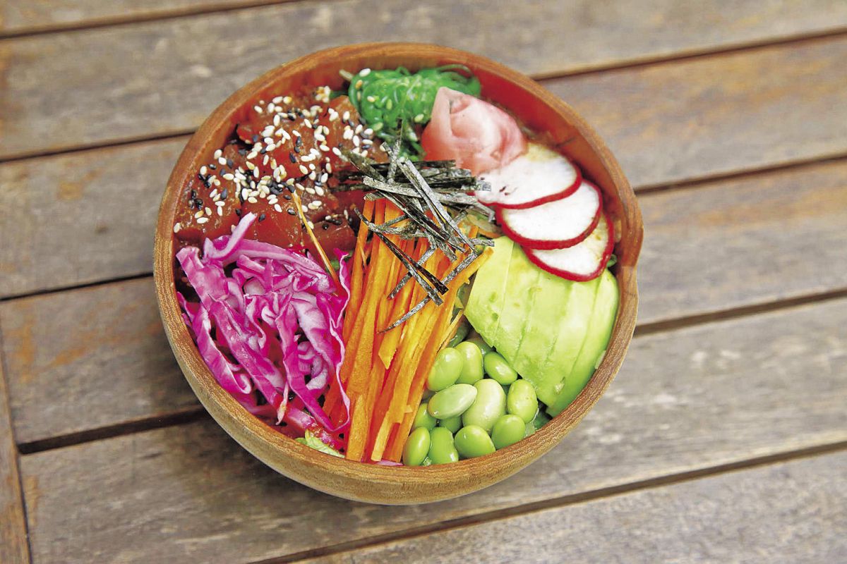 たくさんの在住欧米人にワーキングスペースとして活用してされている人気カフェ。おすすめはポケツナ・ボウル(Rp.6万5000)。醤油や塩などで味付けしたマグロが酢飯にのせてあり、たっぷりの野菜も一緒に味わえるこのお店ならではのメニューです。