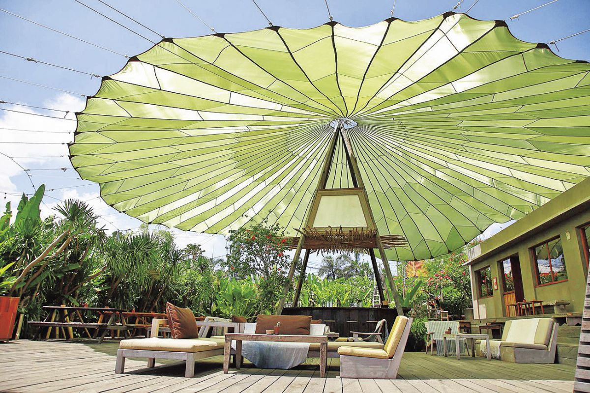 直径約19mもあるオリーブ色の大きなパラシュートが印象的なお店。夕暮れ時はパラシュートの下でサンセット観賞もできちゃいます。広々とした敷地内にはオーガニックファームがあり、提供するメニューに使われているそうです。※2020年改装の予定あり