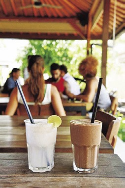 各種スムージーはRp.6万~から楽しめます。ウッド系の温かみを感じる店内でひんやりスムージーをいただいてのんびりと涼みましょう。