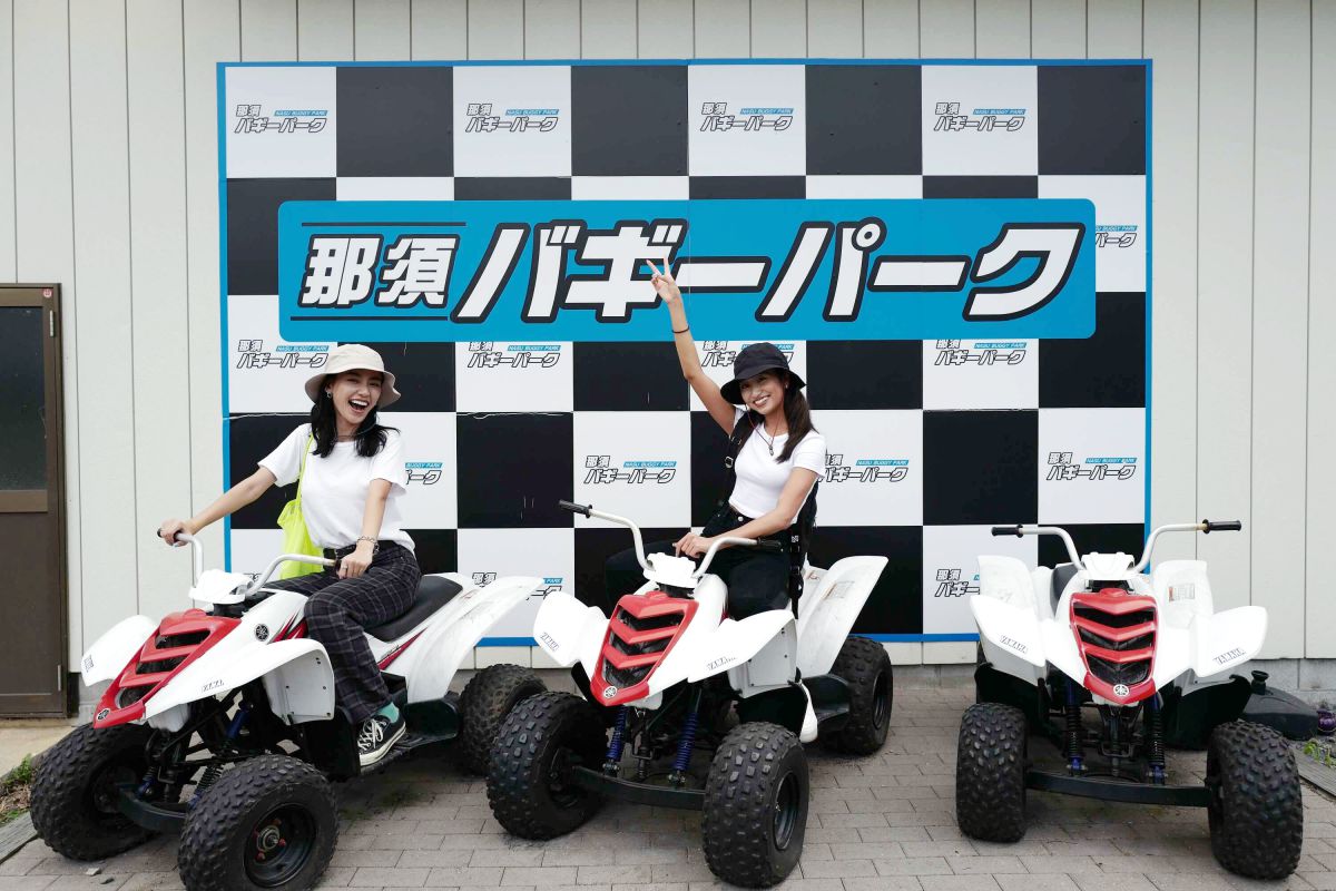 おなかがいっぱいになった後は、もう一つのアクティビティに向かいます。こちらの「那須バギーパーク」は、那須高原の自然の中でバギーの乗車体験が出来るスポット。高低差や障害物がある森の道を自分で運転するバギーで進み、疾走感や迫力を楽しめます。