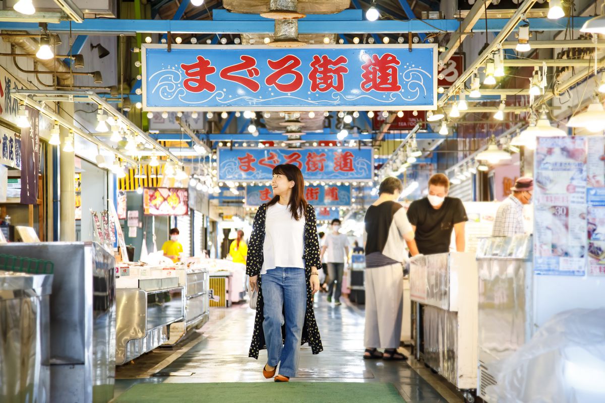 焼津港、小川港、大井川港の産地卸売市場で、一般客も市場の雰囲気を感じられる「焼津さかなセンター」。約8000㎡に60店舗ほどが集まっていて、「いいマグロ入っているよ」、「海鮮丼おいしいよ」とあちこちから威勢のいい呼び声がかかります。