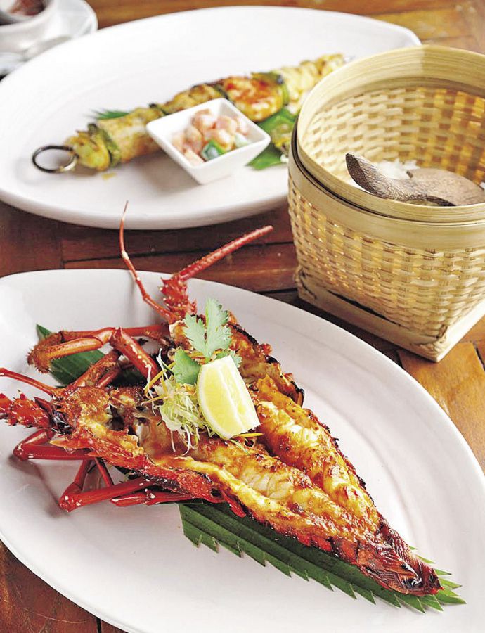 「ライブロック ロブスター(Rp.120万~/約400g)」という名の特大ロブスターのグリルはスチームやグラタン仕立てでもいただけます。