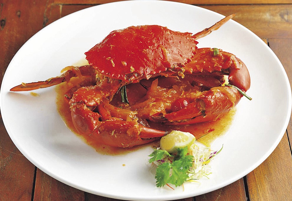 こちらはインパクト特大のマッドクラブ(Rp.59万5000~/約350g)。蒸しガニのソースはチリソースまたはガーリックバターから選べます。
