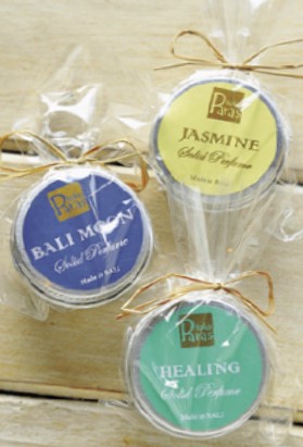 ソリッド・パフューム(各Rp.5万)は、ココナッツオイルやピュアエッセンシャルオイルなどを配合した練り香水。香りは4種類あります。