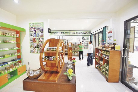 美容系コスメが充実しており、バリのハーブを使った伝統的なレシピでコスメを手作りしているこだわりのお店です。商品棚には日本語の商品説明シートがあるのもうれしいポイント!