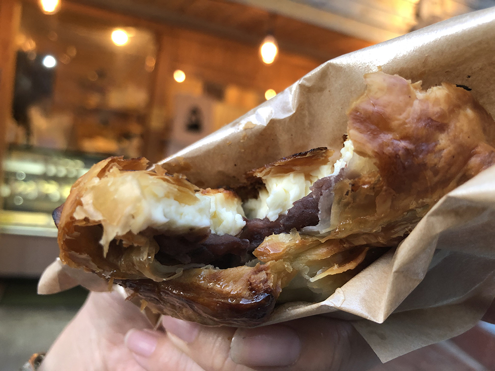 店の一番人気が、この「バナナパイ」。バナナ、あんこ、クリームチーズをサクサクのパイで包んだスイーツです。