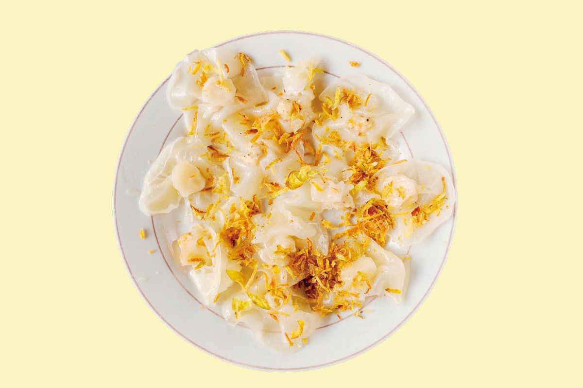 こちらはエビのすり身を米粉の生地で包んで蒸した、ホイアン三大名物料理の一つ「ホワイト・ローズ(2万5000VND)」。白いバラに似ていることから命名。ヌックマムダレがよく合います。