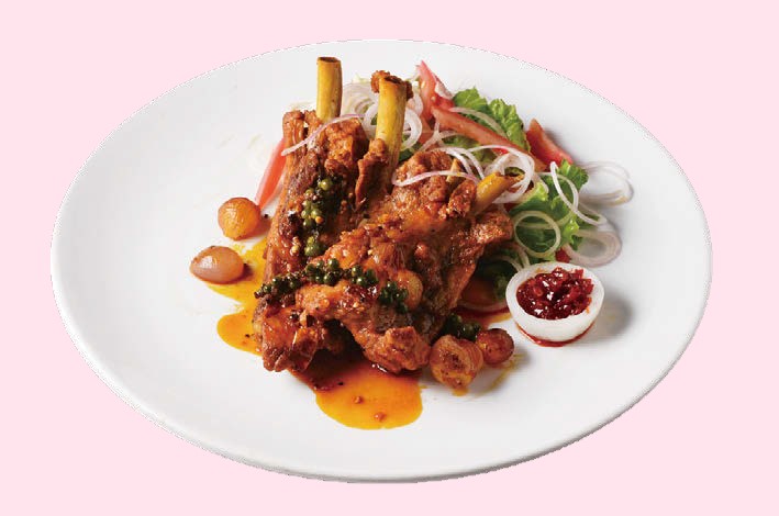 ソースがポイントのポークリブのコショウ煮込み(24万VND)は、骨周りの肉を活用した家庭料理をオシャレにアレンジしたもの。3種のコショウを使った自家製ソースの甘辛さがクセになる人気メニューです!