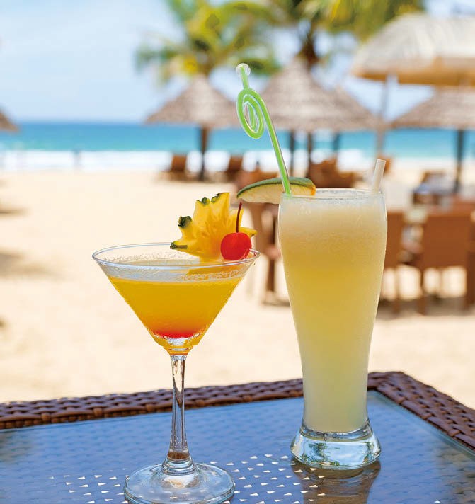 広い砂浜と青い海が広がるビーチサイドのオープンカフェ「ザ・ホリデー・ビーチ・クラブ」。グッドモーニングベトナム(写真左/11万8000VND)、ザボンジュース(写真右/8万8000VND)などのドリンクも、南国らしさを演出してくれます。リゾート感満載の1枚を、SNSで自慢しちゃいましょう!