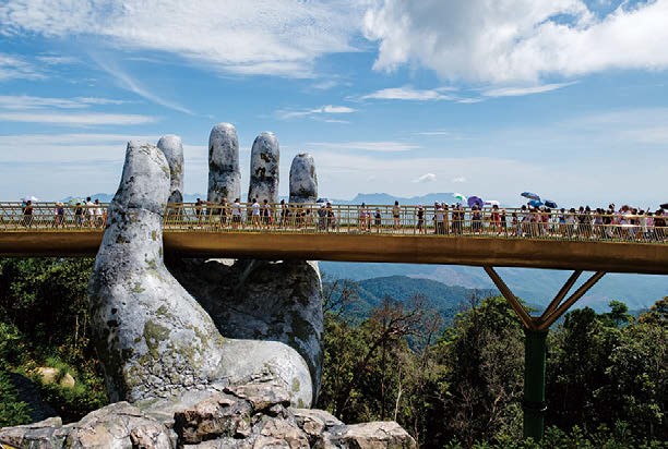 海抜1487mの高地にあるダナン郊外のテーマパーク。通称「神の手」が支えるゴールデンブリッジや、フランスの街を再現したフレンチヴィレッジなど“映え”なスポットが豊富なスポットです。ゴールデンブリッジは、橋の両端内側から撮ると2本の手が収まります。手の近くに立って大きさが伝わるアングルで撮るのもあり◎!