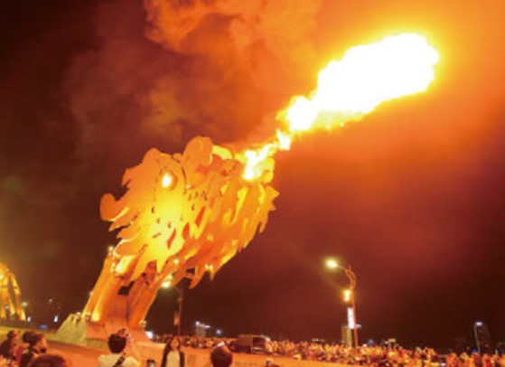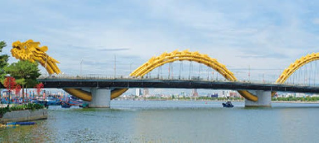 巨大な黄色い龍が目を引く、ダナンのランドマーク「ロン橋」。ダナンの中心地とビーチエリアをつなぐ全長666mの橋で、“ドラゴンブリッジ”の名で親しまれています。