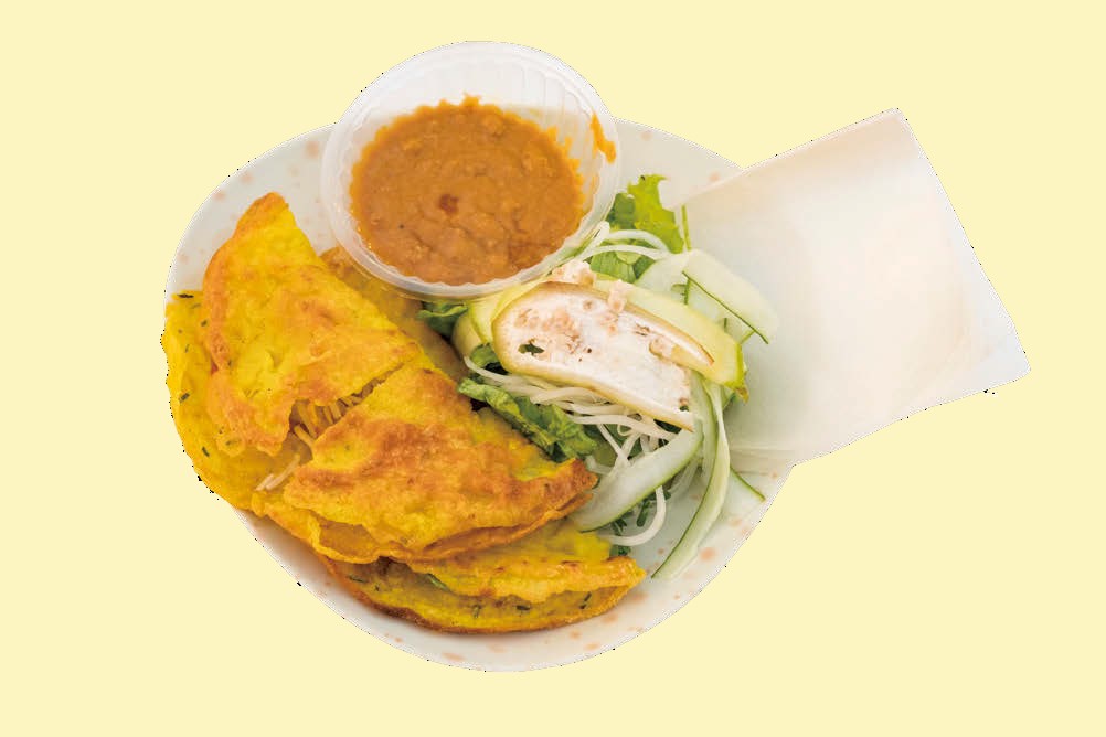 小ぶりな中部のバイン・セオはなんと2個で1万5000VND。調理工程を見ながらできたてを味わえるので、わくわくしちゃいます!