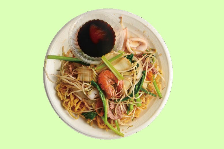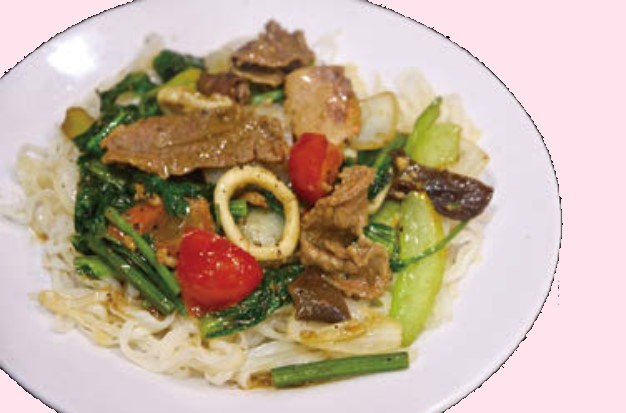 こちらは海鮮入り肉野菜炒めをのせた炒めフォー(6万VND)。具材もたっぷりのっていて、一皿で大満足のお料理です。