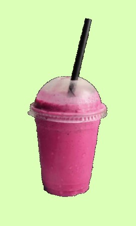 ドラゴンフルーツジュース(3万VND)は見た目もかわいいピンク色!この一品があるだけで、写真の南国らしさがアップします。