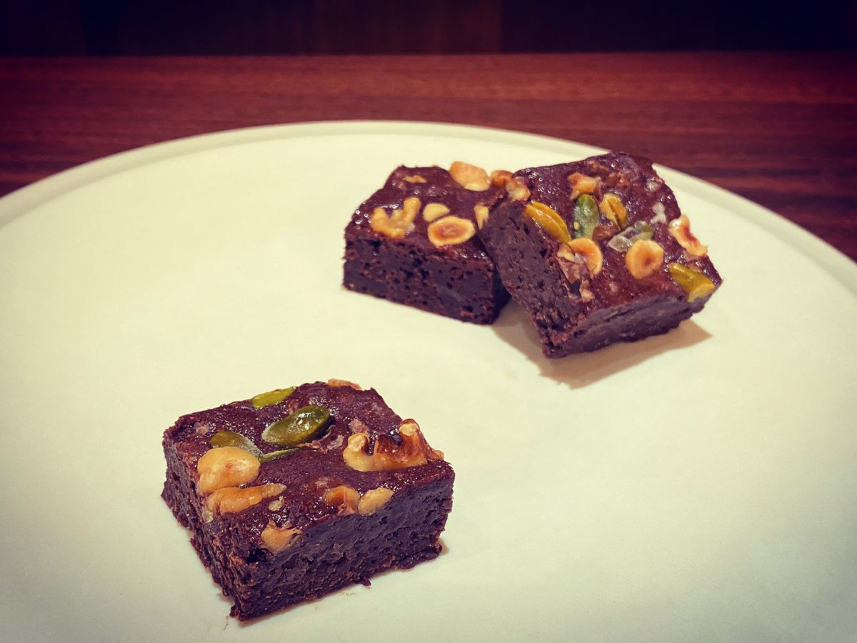 大村氏が用意したのは、カカオ分70%のチョコレートブラウニー。指定のワインと同じニュアンスを持ちつつも、イチジクと塩がアクセントになり、個性あるシェリーにも負けない仕上がりに。イチジクは、「森島平兵衛農園」の木熟無花果をセミドライにし、隠し味に「祇園 Mignon」のチコリコーヒーを加えた贅沢な味わいです。