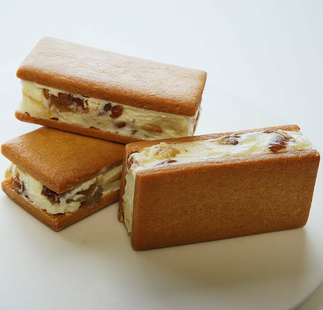 杉江氏の一品は「レーズンバターサンド」。クッキーには発酵バターを使用。バタークリームには、ウォッシュチーズとホワイトチョコを加えて軽い口当たりに。