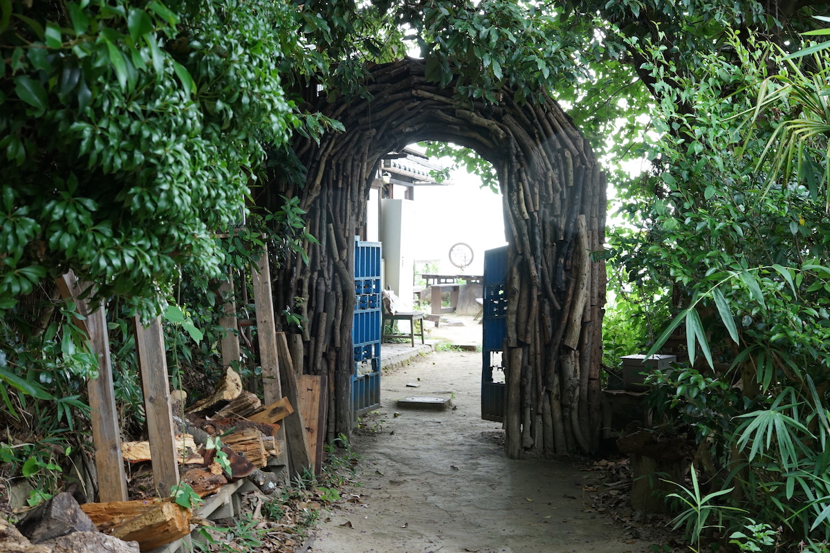 緑に囲まれた木のアーチが見えたら、そこが「雲亭」の入り口。森の中に迷い込んだような、ワクワク感たっぷりのアプローチです!