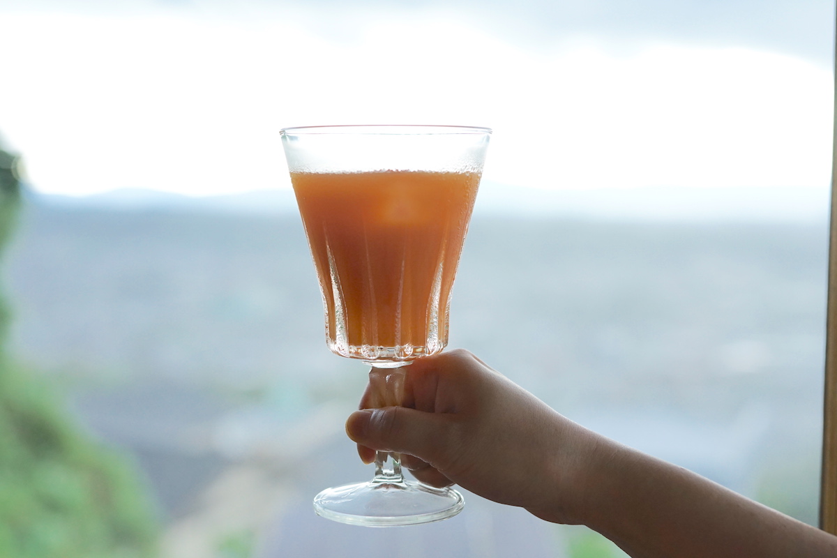 手作り石窯で焼き上げたピザは香ばしく、眺望とも相まって忘れがたいおいしさ。高知県・日高村のフルーツトマトをはじめ、数種類のトマトをブレンドして作った旨味たっぷりのトマトソースとイタリアから取り寄せた風味豊かなモッツァレラチーズが絡まり、京都のハーブ店から仕入れたバジルが新鮮なアクセントをプラスします。