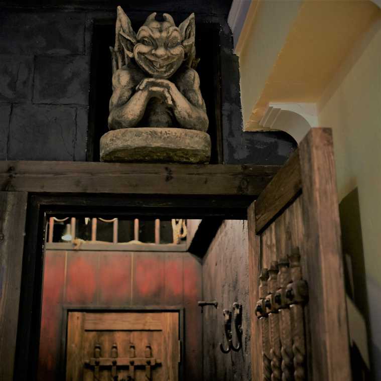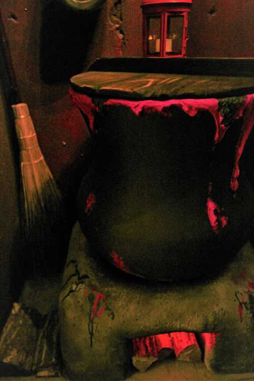 毒リンゴを生み出した毒入り鍋も健在。魔術を行う部屋なので、とても薄暗いです。忠実に再現された見事な小道具に、魔女のシーンが頭をよぎります。