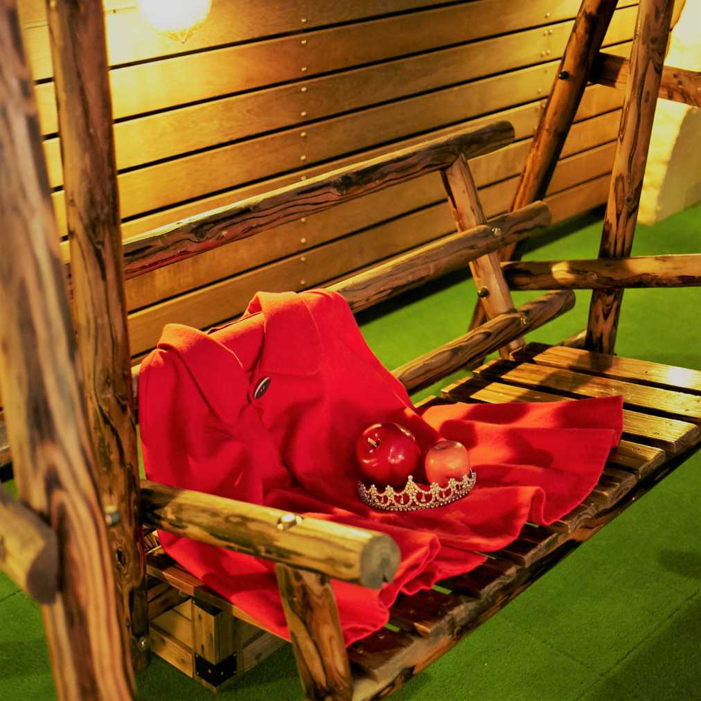 ティアラやリンゴなど、なりきり小道具も豊富です。ティアラを付けて、プリンセス風にセルフィーするのもアリですね!テラスのブランコは、夕暮れ時の撮影がベスト。日が暮れると、森の中っぽい雰囲気がより出ます。