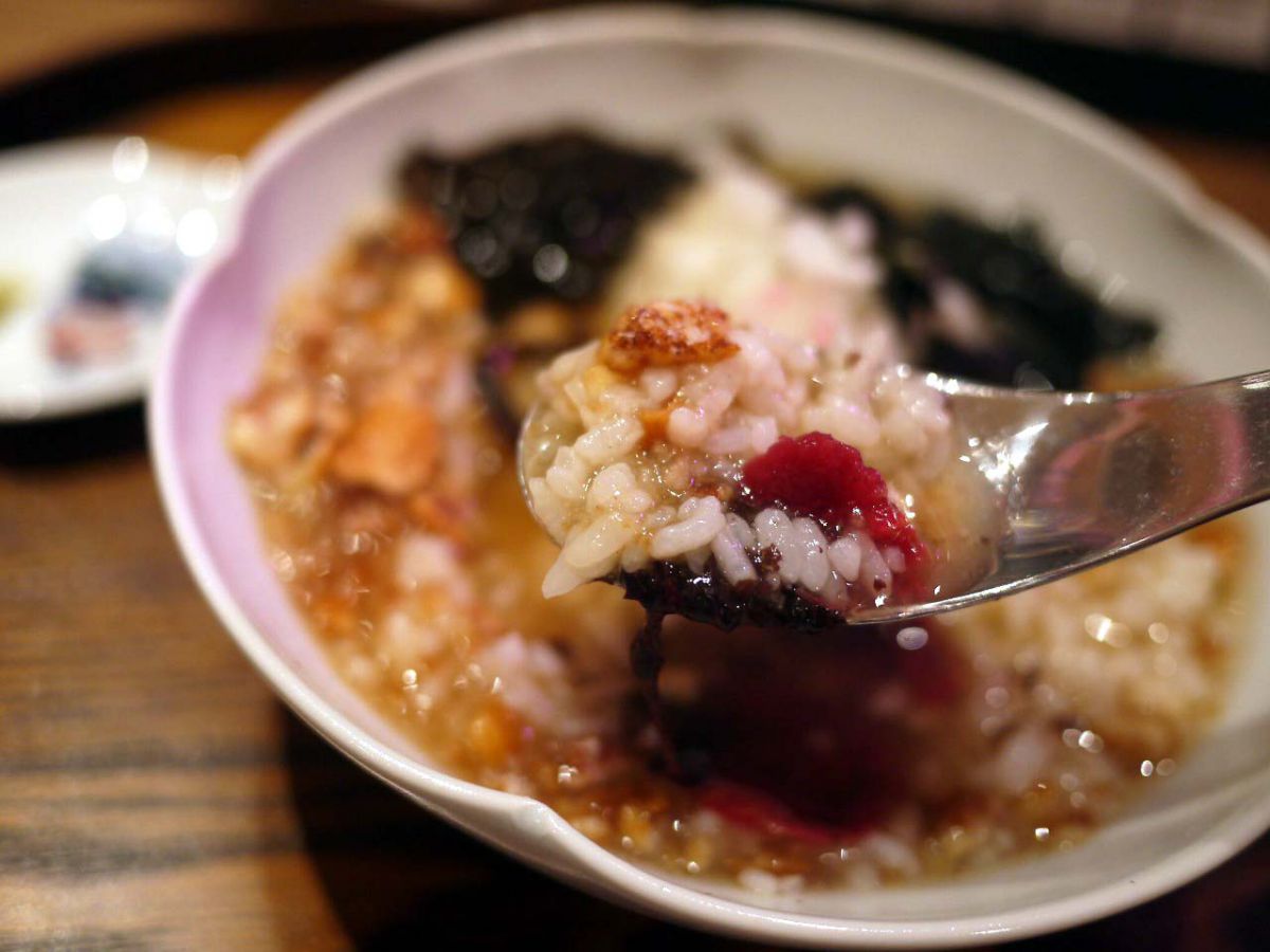 いきなり梅干し単体は…という人は、お茶漬けをどうぞ。好きな梅をひと粒選び、海苔とアラレ、昆布と一緒にお茶漬けにしてもらえます。