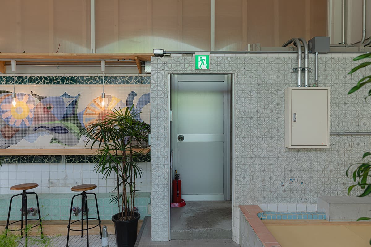 カフェになる前は展示スペースとして使われていたため壁は白く塗られていますが、「宮の湯」時代には、ヤシの木の絵が描かれていたとか。銭湯の壁画といえば富士山ですが、あえてヤシの木が描かれていたというのがなんともユニークです。ちなみに天井は、レインボーカラーに彩られた独特の内装だったそうです。