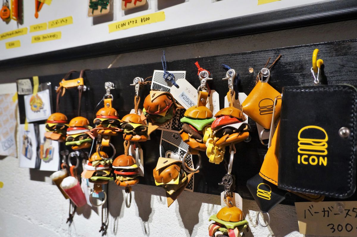 ハンバーガー本やハンバーガー型のクッション、そして「ICON」のハンバーガーを模したアクセサリーなど。