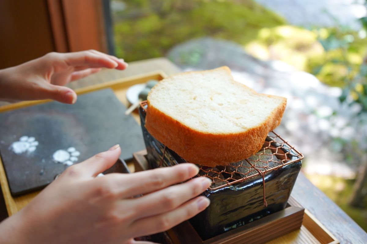 この分厚くカットされたねこ型食パンを、七輪でトーストしていただきます!軽く炙ったり、こんがり焼き目をつけたりと自分好みでトーストして食べられるのがいいですね!