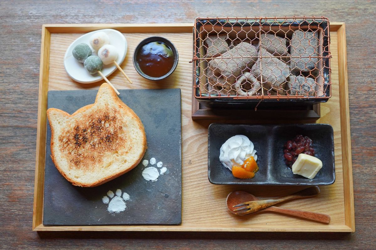面白いのは、『eXcafe京都嵐山本店』の名物メニュー「ほくほく、お団子セット」の七輪をそのままトーストにも使っちゃうこと!