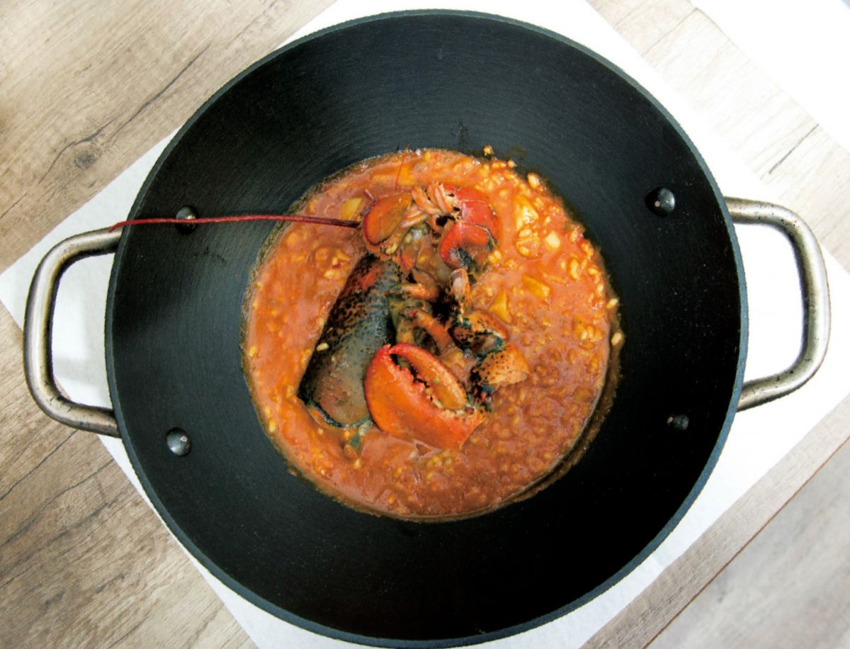 人気のパエーリャは、ロブスターのダシがしっかりと利いた定番の味「アロス・カルドソ・デ・ボガバンテ」1人前、€19.90。コクがあって美味です!オーダーは2人分から。