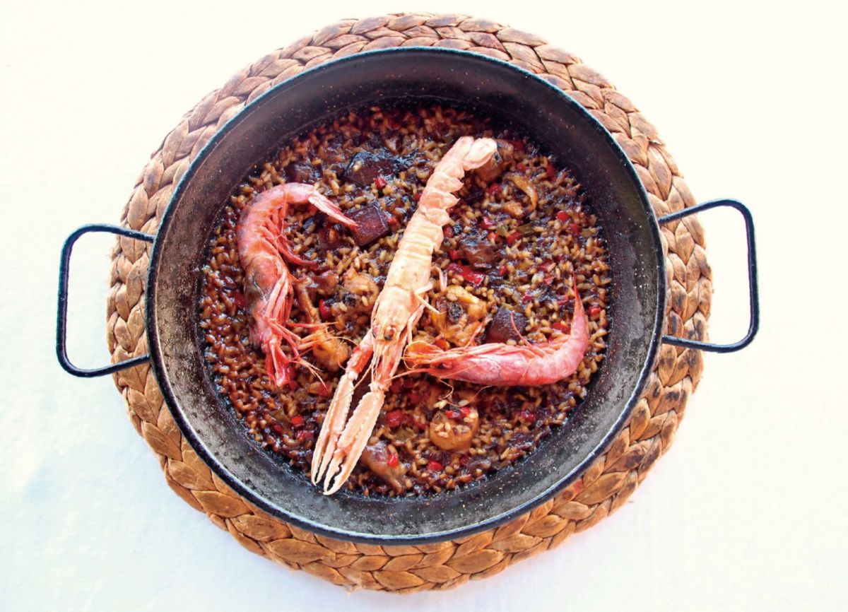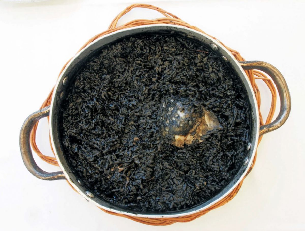 濃厚なアリオリソースとともに食べる名物、イカ墨のパエーリャ「アロス・ネグロ・コン・セピア・エン・ス・ティンタ」1人前、€12.65。是非、本場で一度はいただきたい一品です!オーダーは2人分から。