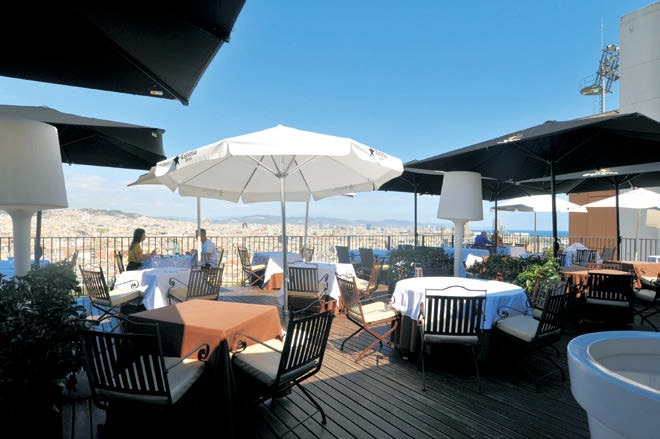バルセロナの街並みを一望する抜群のロケーションにあるレストラン。パエーリャをはじめとした地中海料理がメインで、ワインも360種類以上揃います。