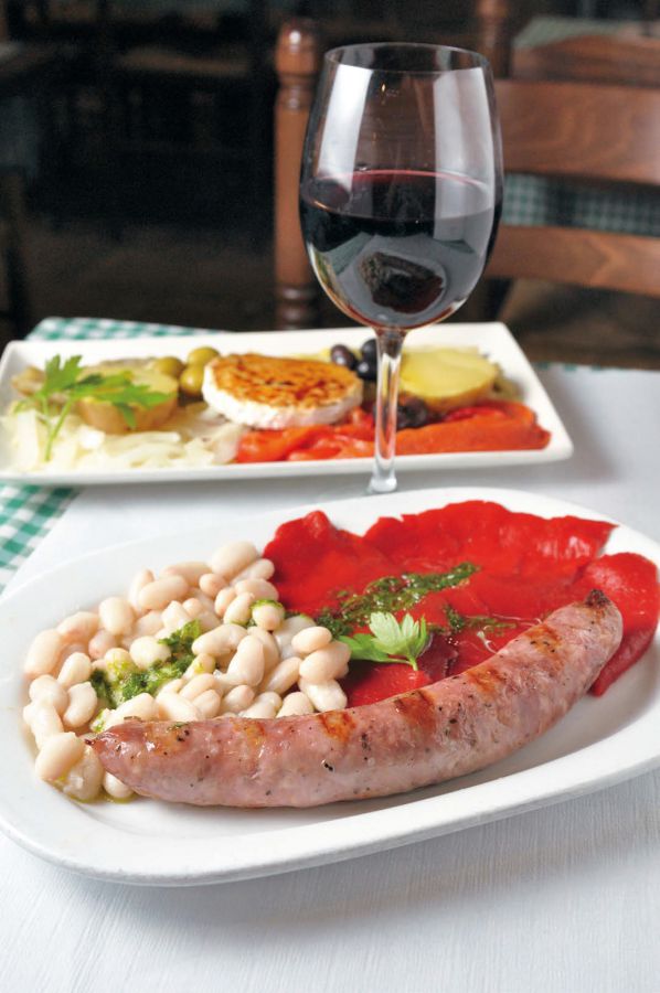名物料理はブティファラ(€9.90)。豚肉を腸詰めにした、カタルーニャの定番料理です。豚の血入りと血なしがあります(写真は血なし)。赤ワインと相性抜群!